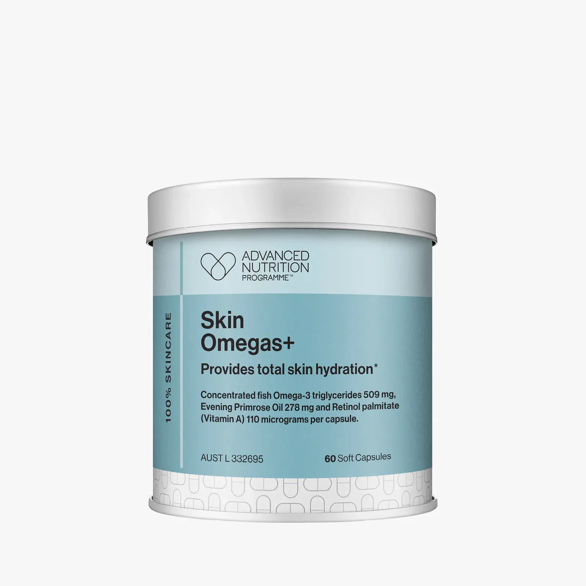 Promote skin hydration and smoothness from the inside out with Skin Omegas+, a premium combination of omega-3 and omega-6 fatty acids enriched with vitamin A. Suitable for all skin types—especially dry or dull skin—this nourishing supplement supports healthy skin structure, moisture balance, and overall skin vitality, particularly when your diet may fall short.